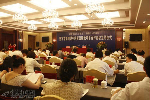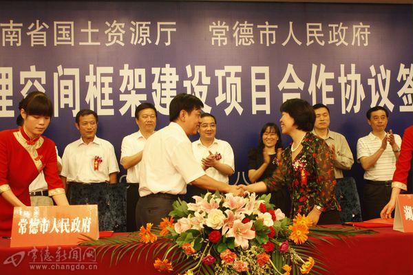 刘小明代表市政府与省国土资源厅签署数字常德地理空间框架建设项目合作协议