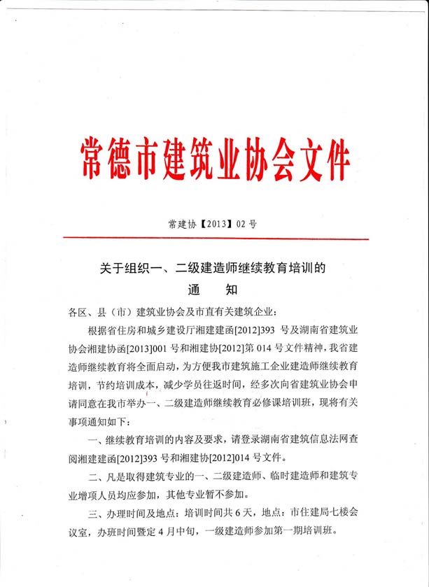 关于组织一、二级建造师继续教育培训的通知