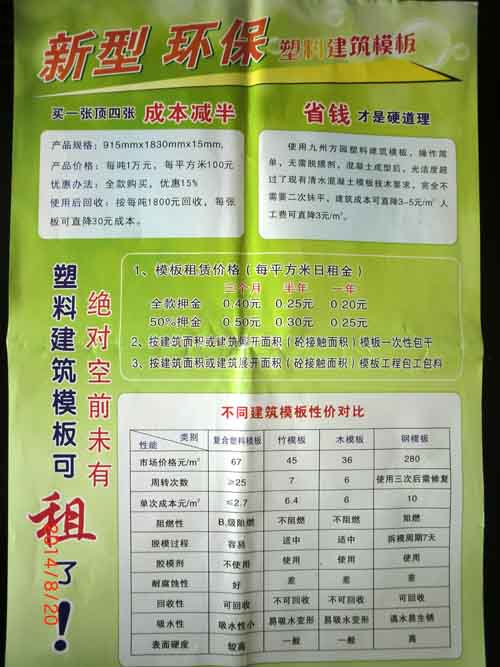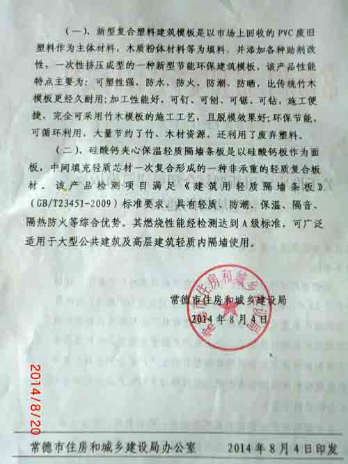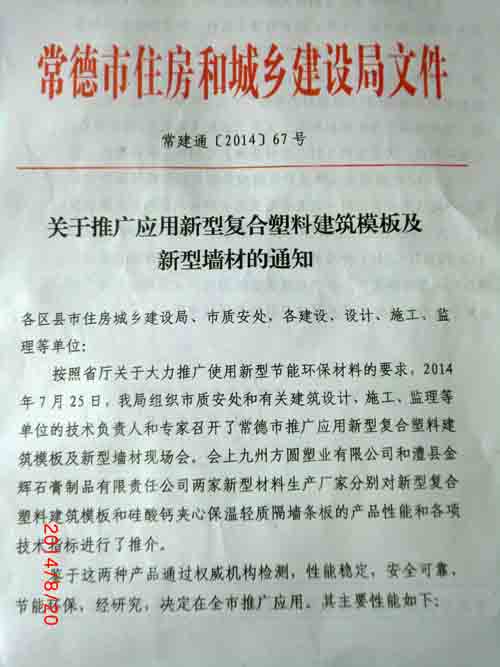 关于推广应用新型复合塑料建筑模板及新型墙材的通知