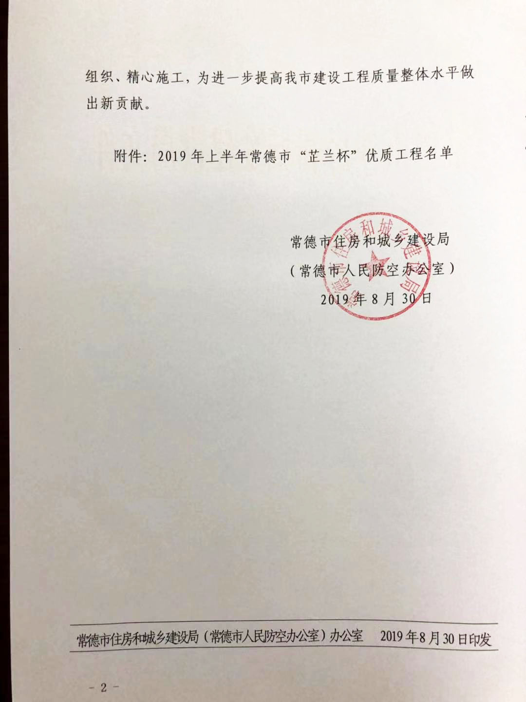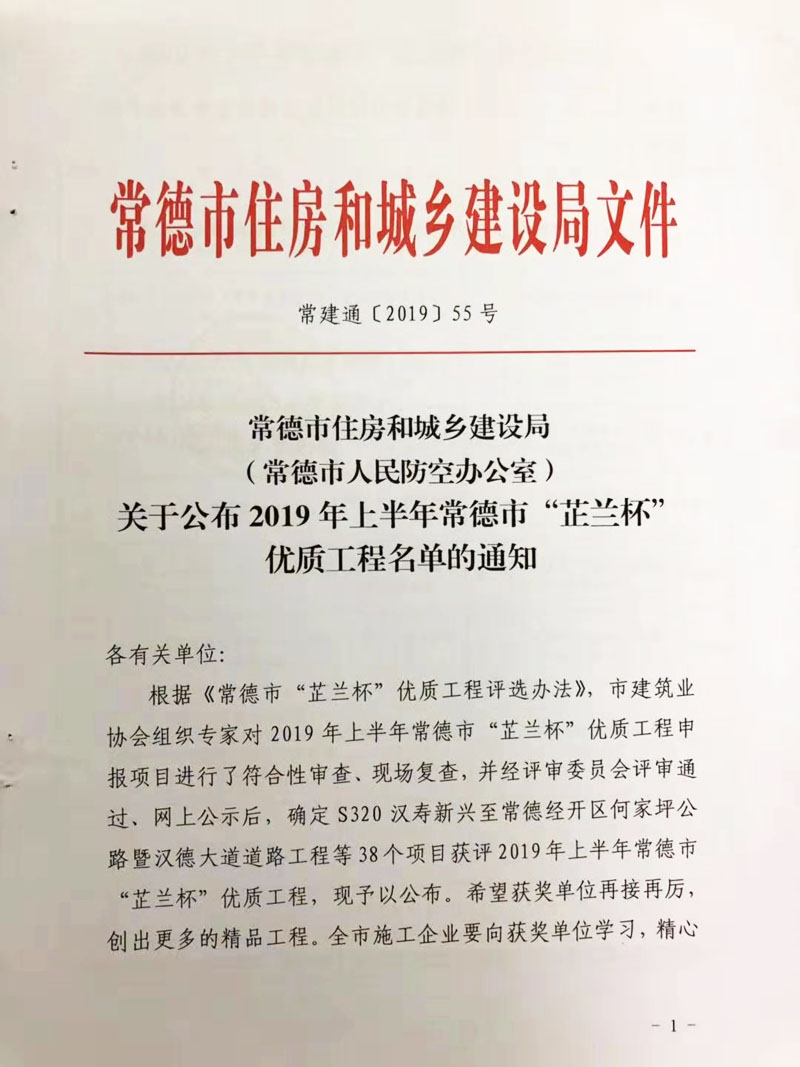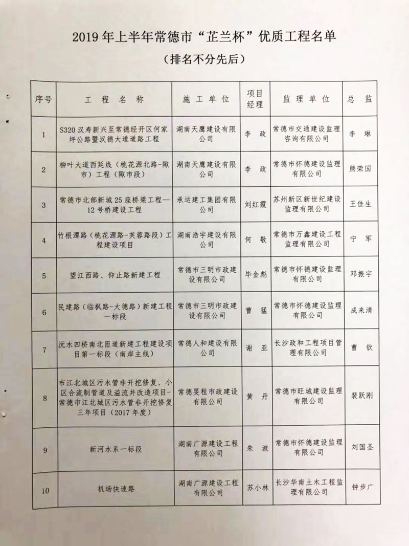 关于公布2019年上半年“芷兰杯”优质工程名单的通知