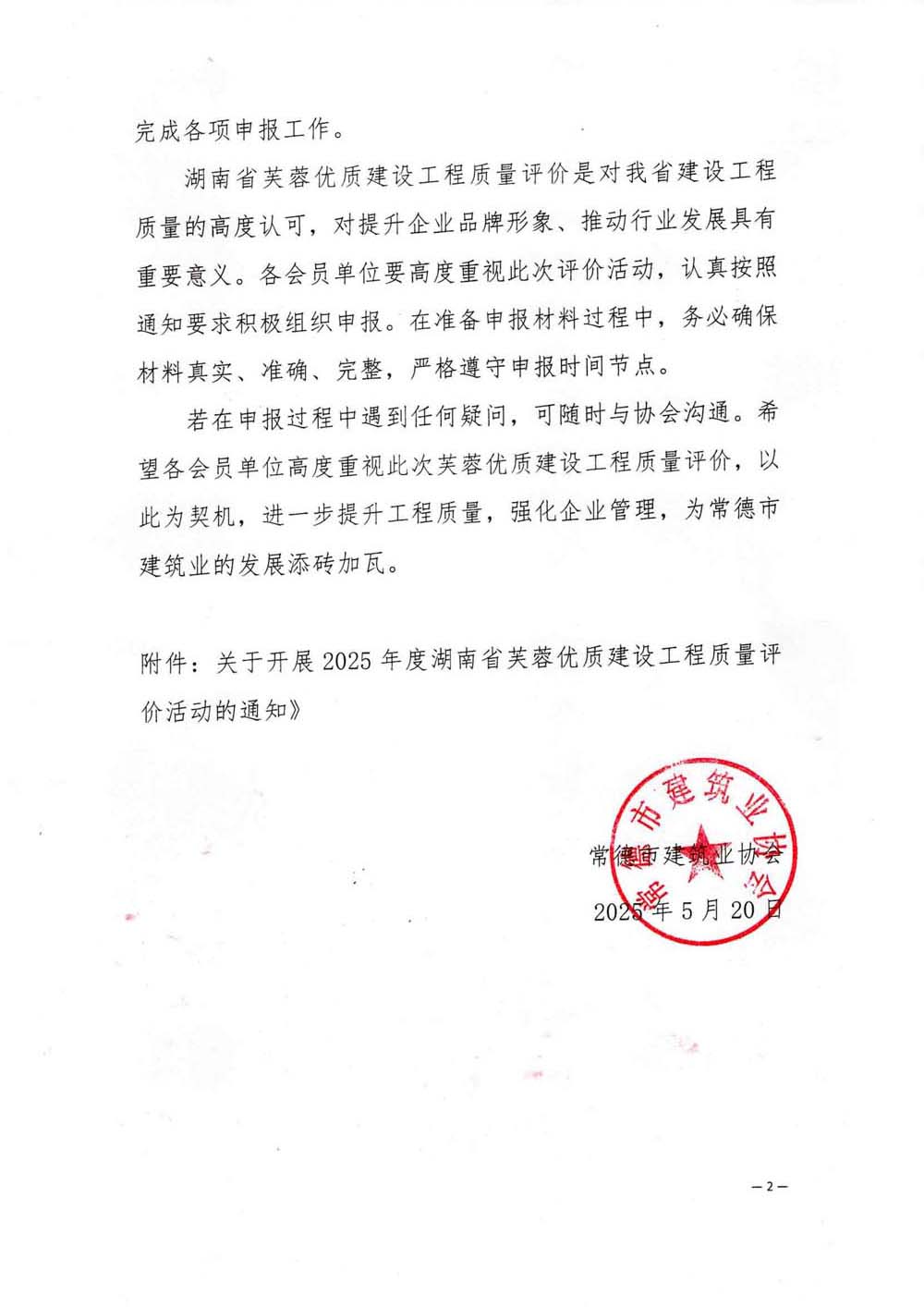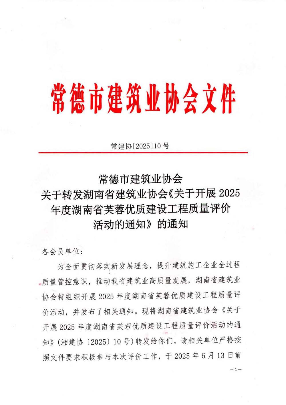 湖南省建筑业协会关于开展2025年度湖南省芙蓉优质建设工程质量评价活动的通知(湘建协〔2025〕10号)(3)(1).doc