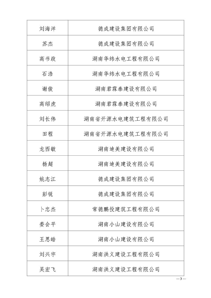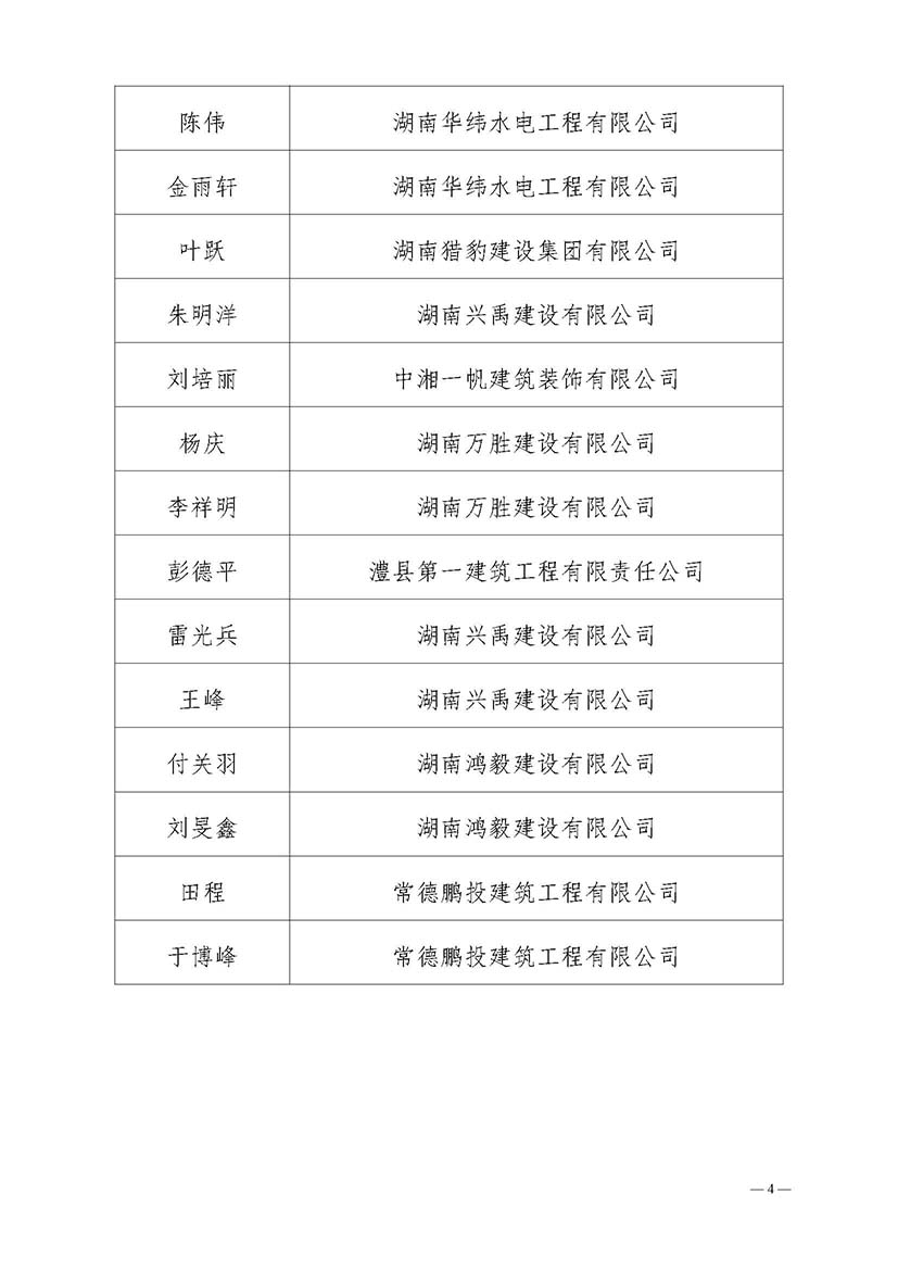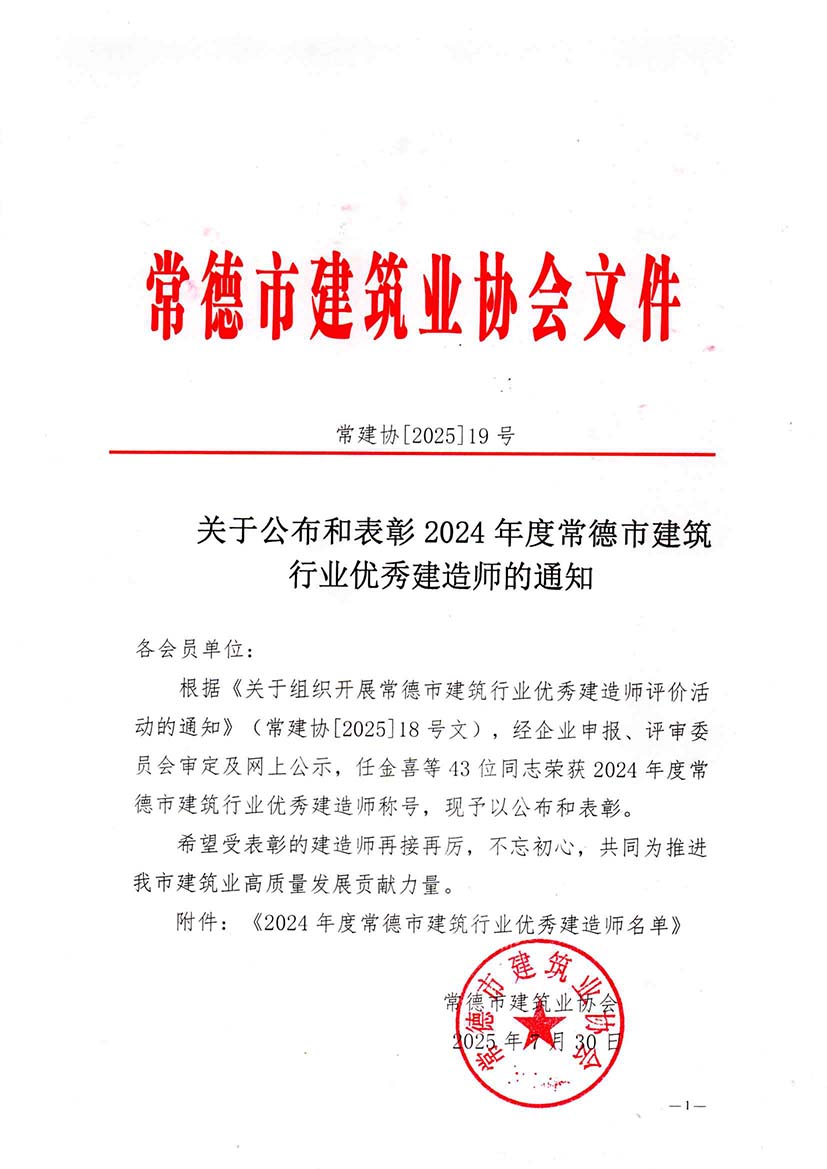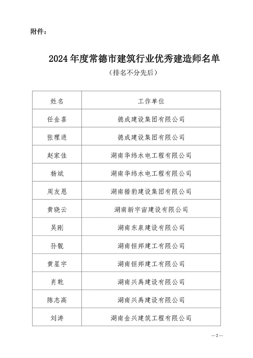 关于公布和表彰2024年度常德市建筑行业优秀建造师的通知