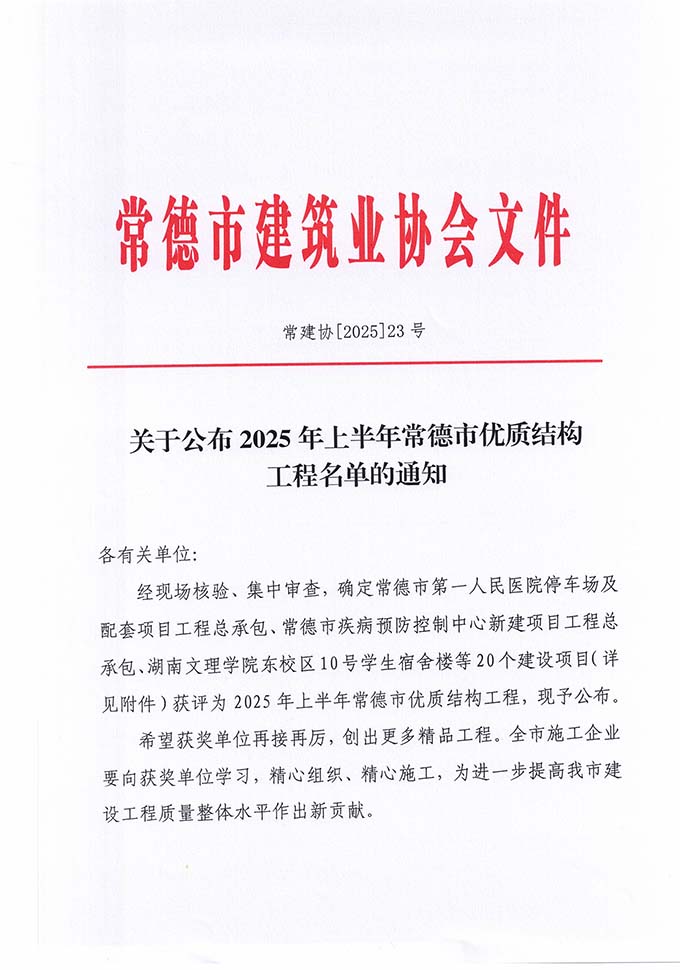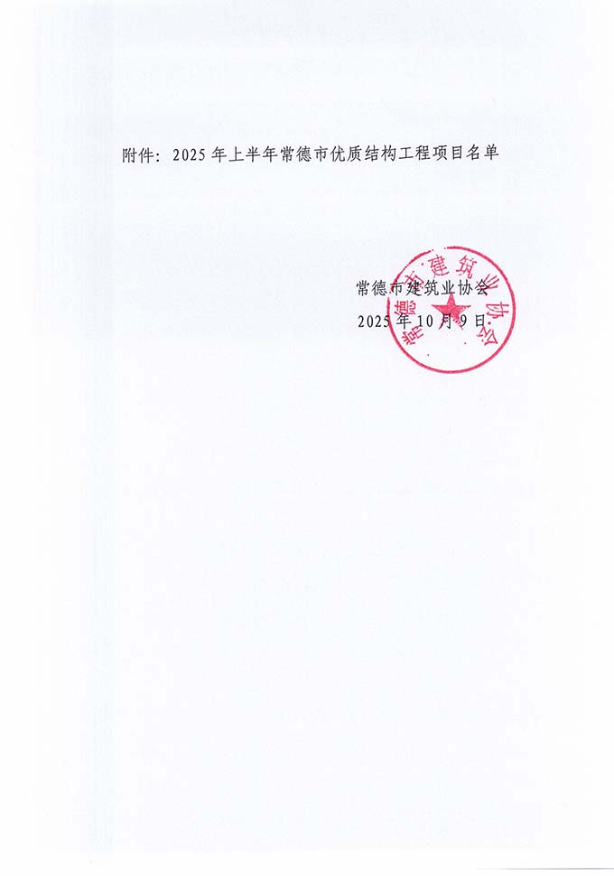 关于公布2025年上半年常德市优质结构工程名单的通知