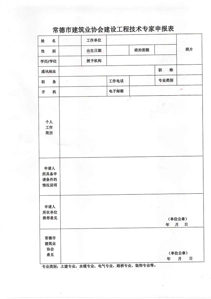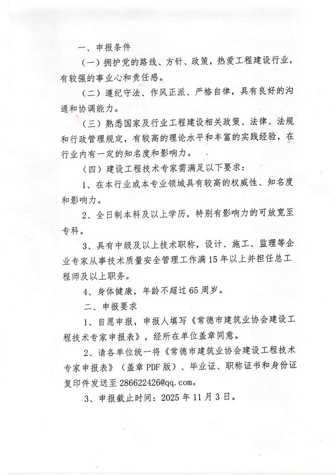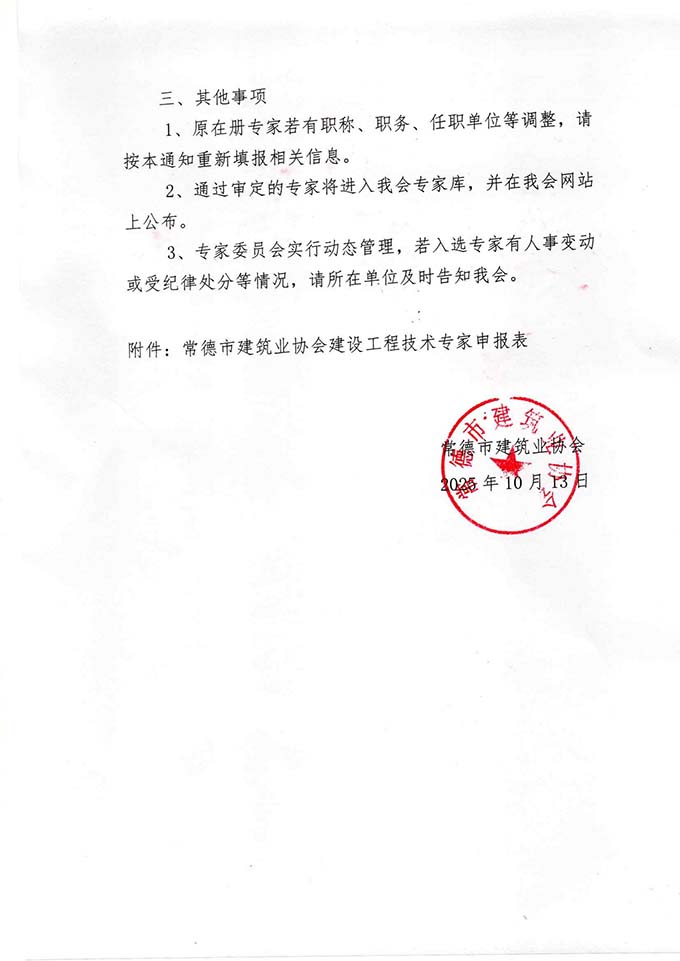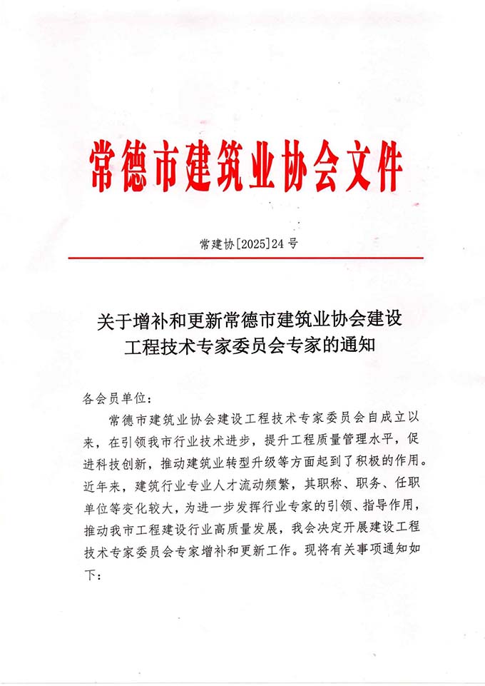 关于增补和更新常德市建筑业协会建设工程技术专家委员会专家的通知