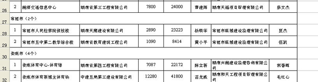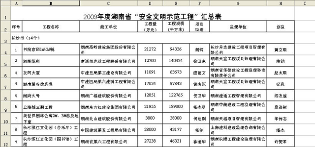 下图为:2009年度湖南省“安全文明示范工程”汇总表局部截图。
