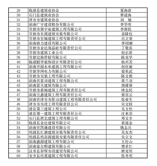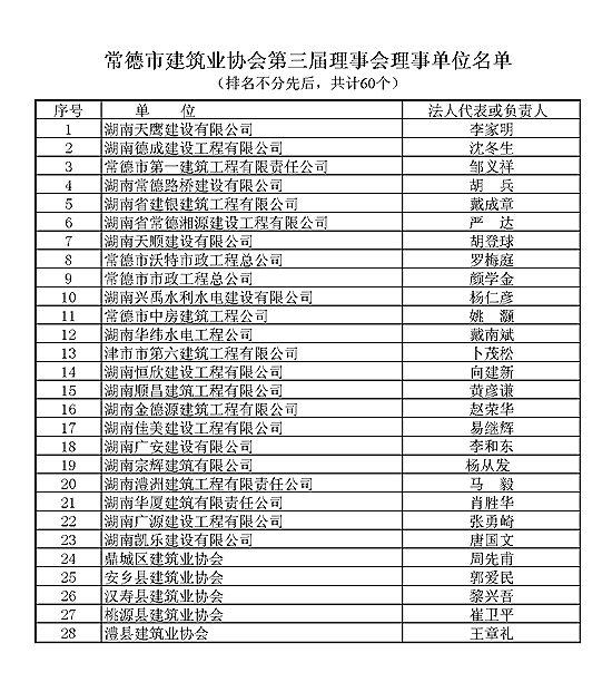 常德市建筑业协会第三届理事会理事单位